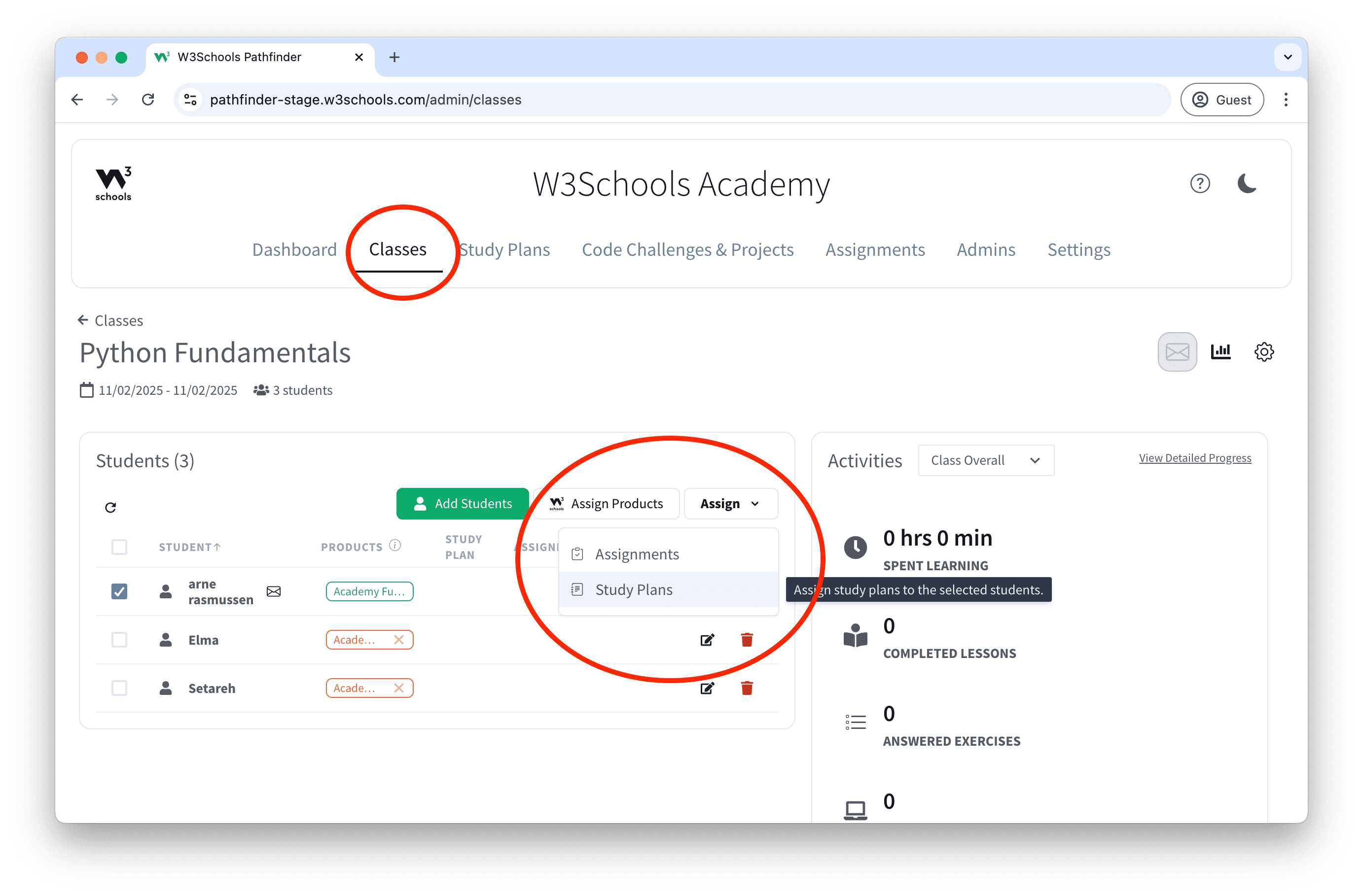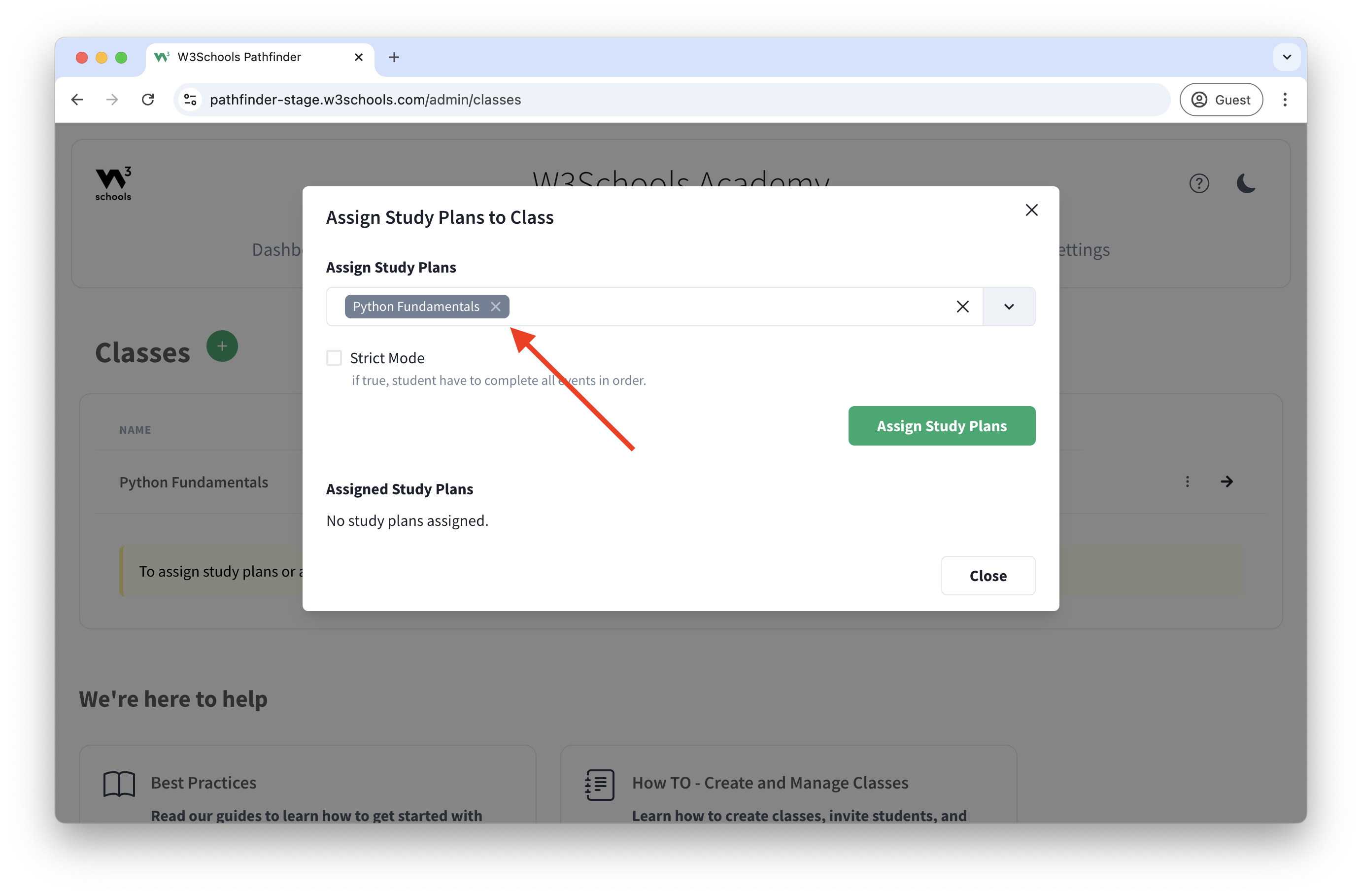 5. Select the Study Plan you want to assign to the class.