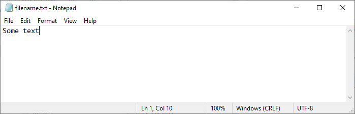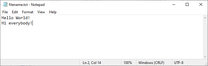 As a result, when we open the file on our computer, it says "Hello World!" instead of "Some text":