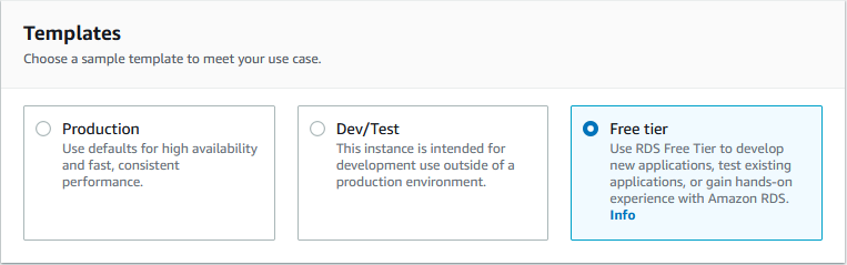 Inside the RDS service, create a database, either by navigating to the Database section, or just click the "Create database" button: