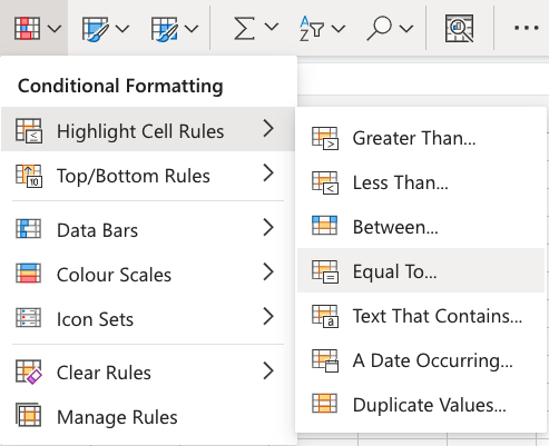 - Select Equal To... from the menu