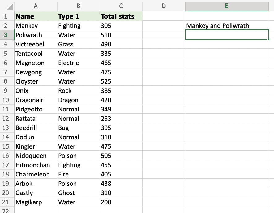 Note: The CONCAT function does not provide any delimiters between cell values used