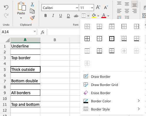 Excel offers 6 different border styles: