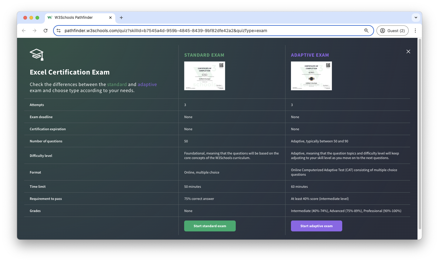 The Excel exam is a test that summarizes the W3Schools Excel syllabus.