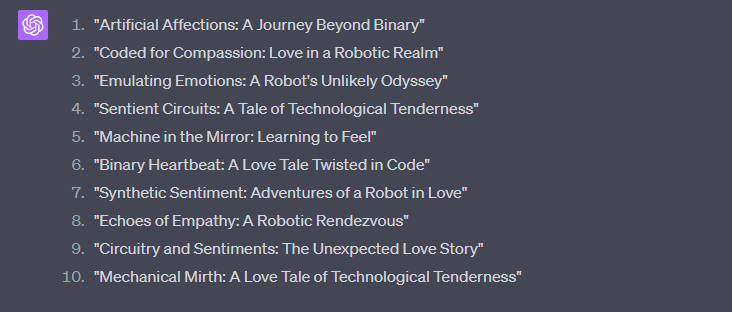 You can use ChatGPT as a creative assistant to help you find ideas for a title