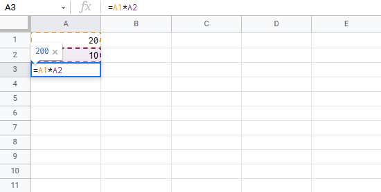 Let's have a look at an example where we multiply B1(5) with the range A1:A10 using absolute reference and the fill function.