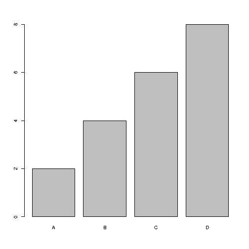 xvariable represents values in the x-axis (A,B,C,D) - The